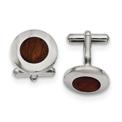Black Bow Jewelry Stainless Steel Brushed & Polished Domed Rectangle Cuff Links, 19x14mm