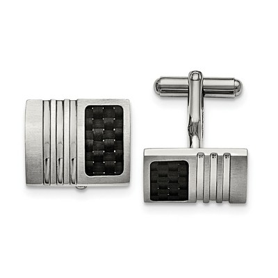Black Bow Jewelry Men's Stainless Steel and Black Carbon Fiber Convex Cuff Links