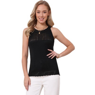 INSPIRE CHIC Women's Crochet Knit Casual Crew Neck Cami Sleeveless Sweater Vests Large Black