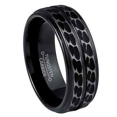 Jewelry Avalanche Lord's Prayer Ring, Black Tungsten Carbide Wedding Band, Comfort-fit, 8mm