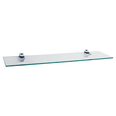 24" x 6" Glass Floating Shelf with Brackets Clear/Silver - Danya B.: Wall Mounted, Tempered, Bathroom Compatible