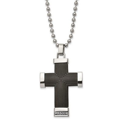 Black Bow Jewelry Two Tone Stainless Steel & Crystal Reversible Cross Necklace, 22 Inch