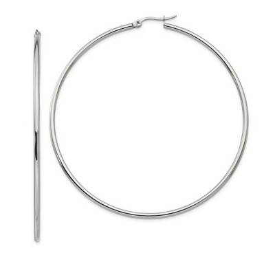 Black Bow Jewelry 2mm, 14k White Gold Classic Round Hoop Earrings, 35mm (1 3/8 Inch)