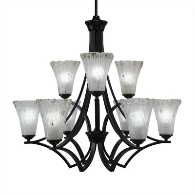 Toltec Lighting Zilo 9 - Light Chandelier in Matte Black with 5.5" Fluted Frosted Crystal Shade