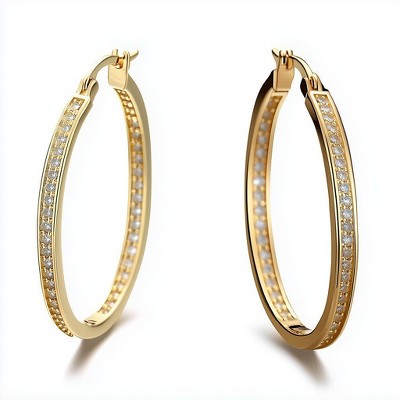 14K Gold and White Gold Large Hoop Earrings with crystals from Swarovski