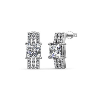Cate & Chloe Brooke 18K White Gold Plated Stud Earrings with Swarovski Crystals Princess Cut Classic Design Gift for Women 1 Pair