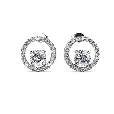 Cate & Chloe Harmony 18K White Gold Plated Halo Stud Earrings with Swarovski Crystals, Hypoallergenic Gift for Women