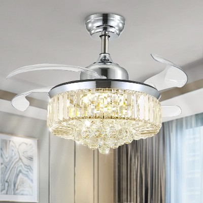 Ludomide 36" Dimmable Crystal Chandelier Ceiling Fan with Retractable Blades