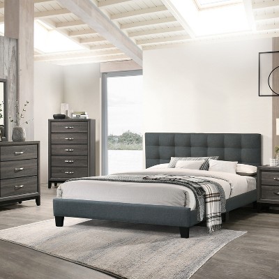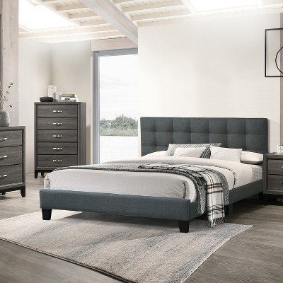 - grey tufted bed