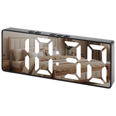 Aoibox Slim LED Digital Alarm Clock with Mirror Surface, Dimming Feature, Large Display, Easy Setting, USB Ports, Modern Decor for Bedroom, Desk