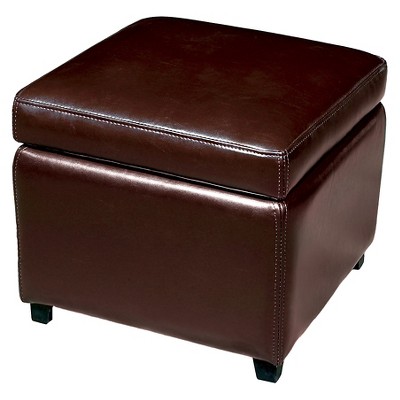 Full Leather Small Storage Cube Ottoman - Baxton Studio