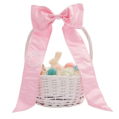 Personalization Mall White Easter Basket With Initial Embroidered Bow
