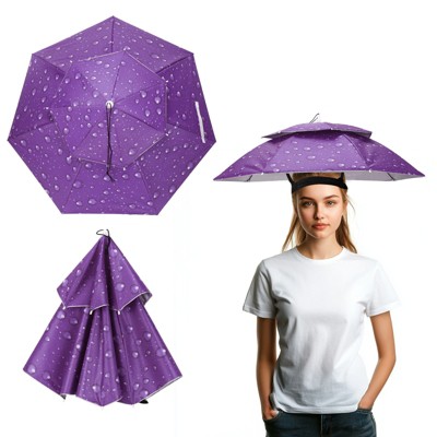 Unique Bargains Umbrella Hat, Fishing Hat Waterproof Adjustable Double-Layer Sun Rain Cap Purple