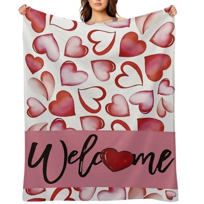 Lomsoe 1pc Valentine's Day Flannel Blanket,Throw Blanket Heart,for Party Home Bed,Valentine's Day Gift.