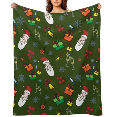 FIONECA Vintage Christmas Letter Print Blanket with Poinsettia and Floral Pattern Soft Warm Holiday Decor Throw 30x40 inches