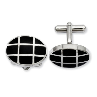 Black Bow Jewelry Stainless Steel & Black Plated Step Edge Rectangle Cuff Links, 20x12mm