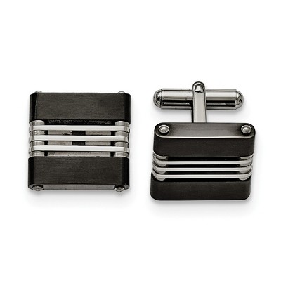 Black Bow Jewelry Men's Stainless Steel and Carbon Fiber Grooved Cuff Links, 17 x 20mm