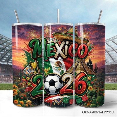 Mexico 2026 Soccer Cup Global Championship 20oz Tumbler With Lid and Stainless Steel Straw, Fans Football Gift Cup | OrnamentallyYou
