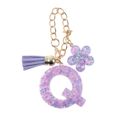 Unique Bargains Star Sequin Letter Q Flower Tassel Water Cup Pendant Purple 1 Pc