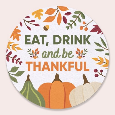 Big Dot of Happiness 25 Ct Eat Drink and Be Thankful Drink Coasters, 4-Inch Disposable Round Paper Coasters for Friendsgiving Thanksgiving Decoration