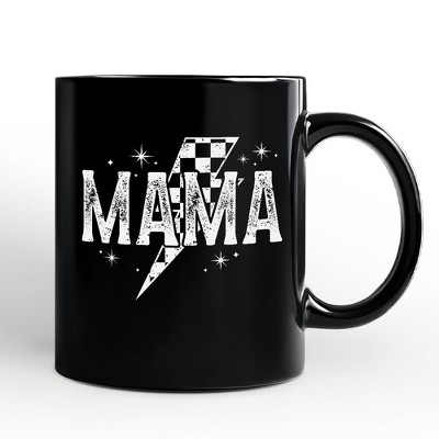 Checkered Lightning Bolt Mama Mug, Vintage Retro Black and White Gift for Energetic Moms | OrnamentallyYou