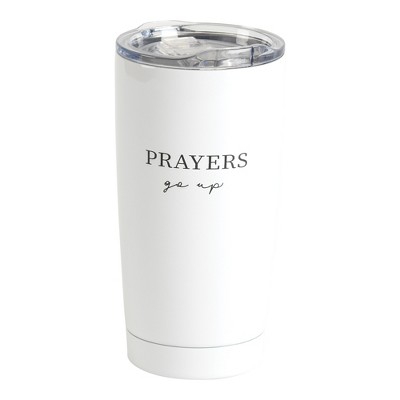 Dicksons SSTUMW-78 Black White 20 Ounce Stainless Steel Travel Tumbler Mug with Lid Mug with Lid, Prayers Go Up Blessings Come Down