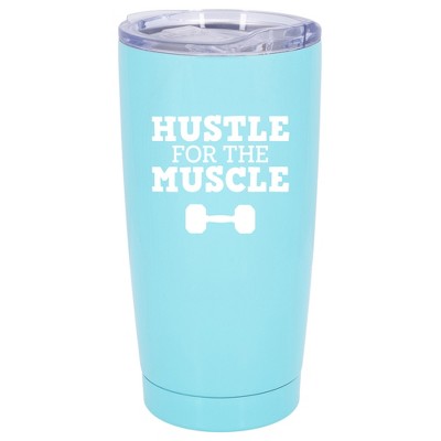 100 North 20 Ounce Stainless Steel On the Go Travel Tumbler With Push Top Lid, Hustle for the Muscle Teal