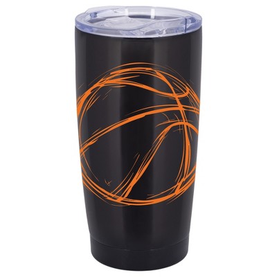 100 North 20 Ounce Stainless Steel On the Go Travel Tumbler With Push Top Lid, Basketball Sketch Black