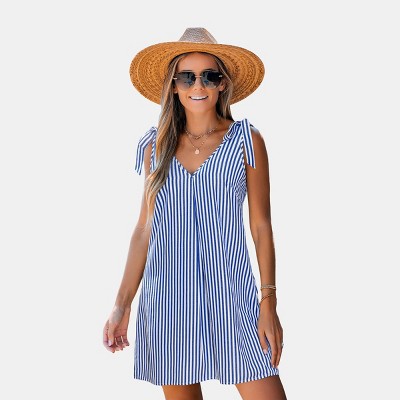 Women's Striped Sleeveless Beach Dress with V-Neckline - Cupshe