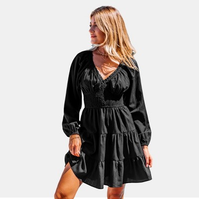 Women's Black Mini Dress with Tiered Ruffles for Effortless Charm - Cupshe