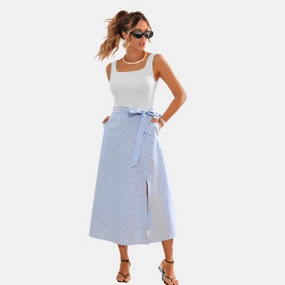Women's Breezy Striped Sleeveless Dress with Drawstring Waist - Cupshe