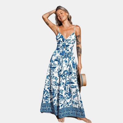 Women's Elegant Blue Floral Maxi Dress for Summer Beach Vacation - Cupshe