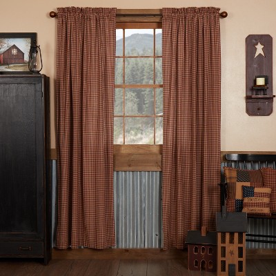 Burgundy Check Scalloped Prairie Short Panel Set of 2 63x36x18