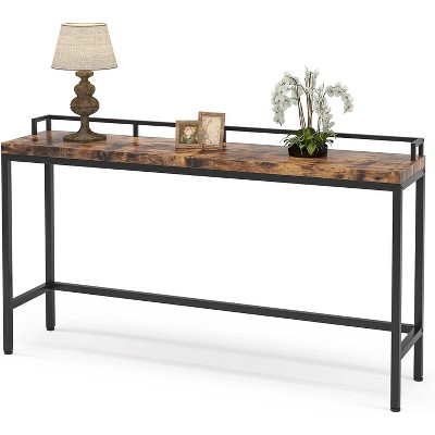 Tribesigns 63-Inch Long Console Table, Farmhouse Narrow Sofa Table Behind The Couch for Living Room, Entryway, Hallway, Foyer, Natural Brown
