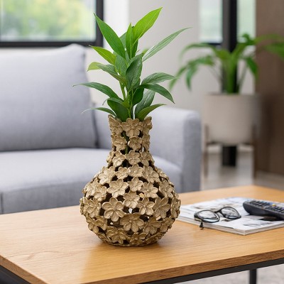 Uniquewise 27-Inch Fiberglass Vintage Farmhouse Floor Vase, Boho Wedding Centerpiece - Unique Black and Gold Rustic Design Tall Vase