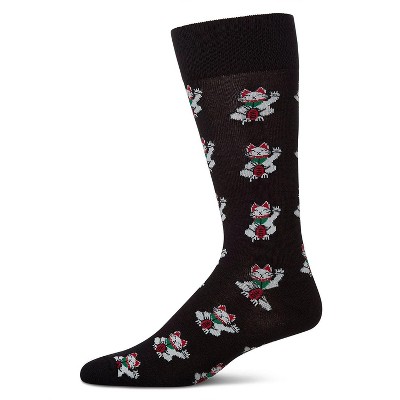 Memoi Lucky Cat Maneki-Neko Men's Bamboo Blend Crew Socks