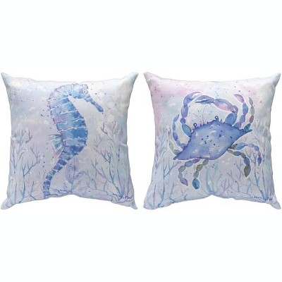 Manual Woodworkers and Weavers Sea Creatures Climaweave Throw Pillow, 18" x 18" Cushion in White/Blue Multi with Polyester Fill