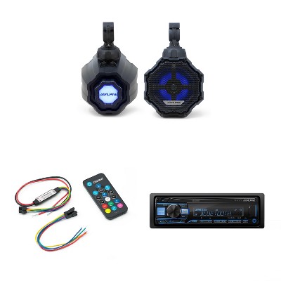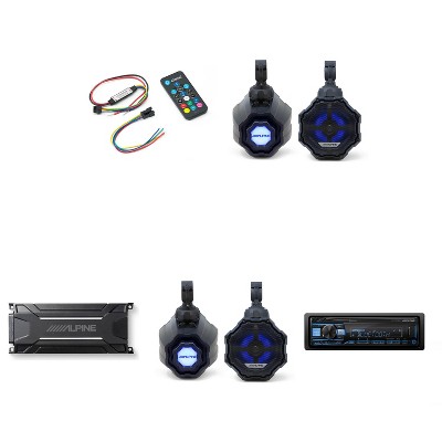 Alpine (2) SPV-65RGB-CAN 6.5” Cage-Mounted Universal Weather-Resistant Coaxial RGB LED Speaker Pods with KTA-30FW Amp & UTE-73BT Source