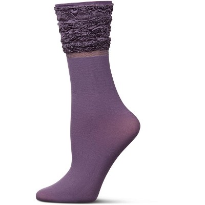 Memoi Women's Shimmer Roll Top Sheer Shortie Socks Silver 9-11