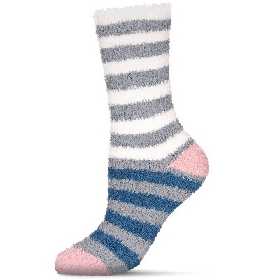 Memoi Striped/Solid Fuzzy Plush Crew Socks 2 Pack Pink Carnation One Size