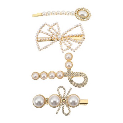 Unique Bargains Women's Faux Pearl Bow Hair Clips and Pins Gold Tone 1 Pc