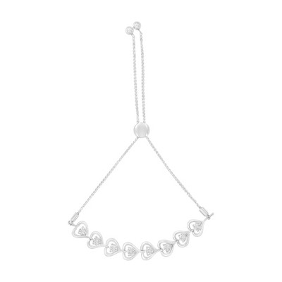 Guili Sterling Silver Rhodium Plated Clear Round Cubic Zirconia 3-Stone Link Bracelet, Modern and Sparkling Design for Stylish Glamour