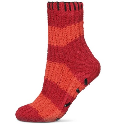 Memoi Women's Wide Stripe Chenille Non-Skid Slipper Crew Sock