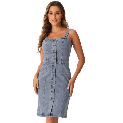 INSPIRE CHIC Women's Button Down Sweetheart Neckline Sleeveless Summer Knee Length Denim Bodycon Sundress