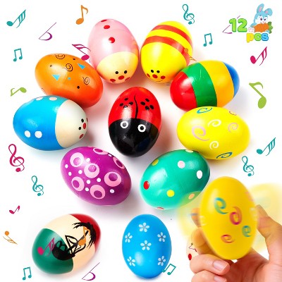 Joyfy 12 Pcs 2.7" Wooden Easter Eggs Shakers Musical Toys for Kids Easter Gifts, Basket Stuffers, Easter Party Favors, Classroom Prize Supplies