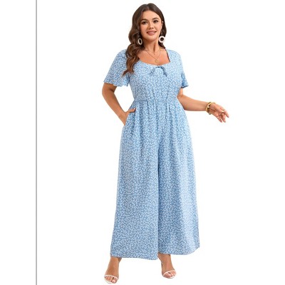 Coolmee Women's Plus Size Floral Jumpsuits Sweetheart Neck Dressy Casual Wide Leg Long Pant Romper with Pockets