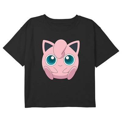 Girl's Pokemon Cute Jigglypuff Portrait Graphic Graphic Cropped T-Shirt