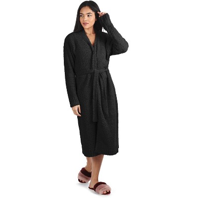Memoi Women's Daisy Cozy Knit Wearable Throw Robe Black One Size