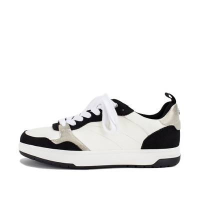 bebe Women's Fashion Lace-Up Platform Shoes Chunky Sneakers with Mixed Material Upper and Logo Rivet