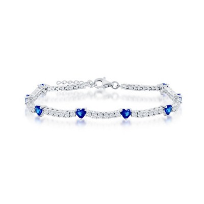 Bella Silver Sterling Silver Heart and CZ Tennis Bracelet - Sapphire CZ - Blue - 7+1 Inch